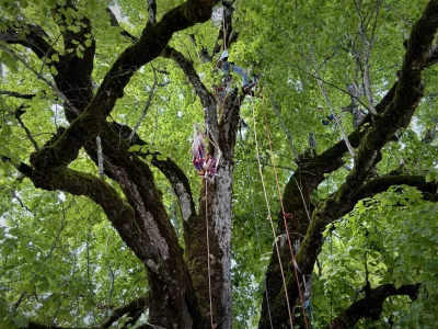 During a festival in our village, the children got to climb the ancient lime tree on the village square.